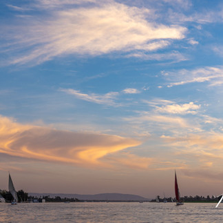 One of the highlights of our trip was cruising on the Nile River to Luxor. The river, a lifeline for Egypt, offered a peaceful contrast to the bustling cities. From the deck of our boat, we watched the sun paint the sky in shades of orange and pink while palm trees lined the banks.